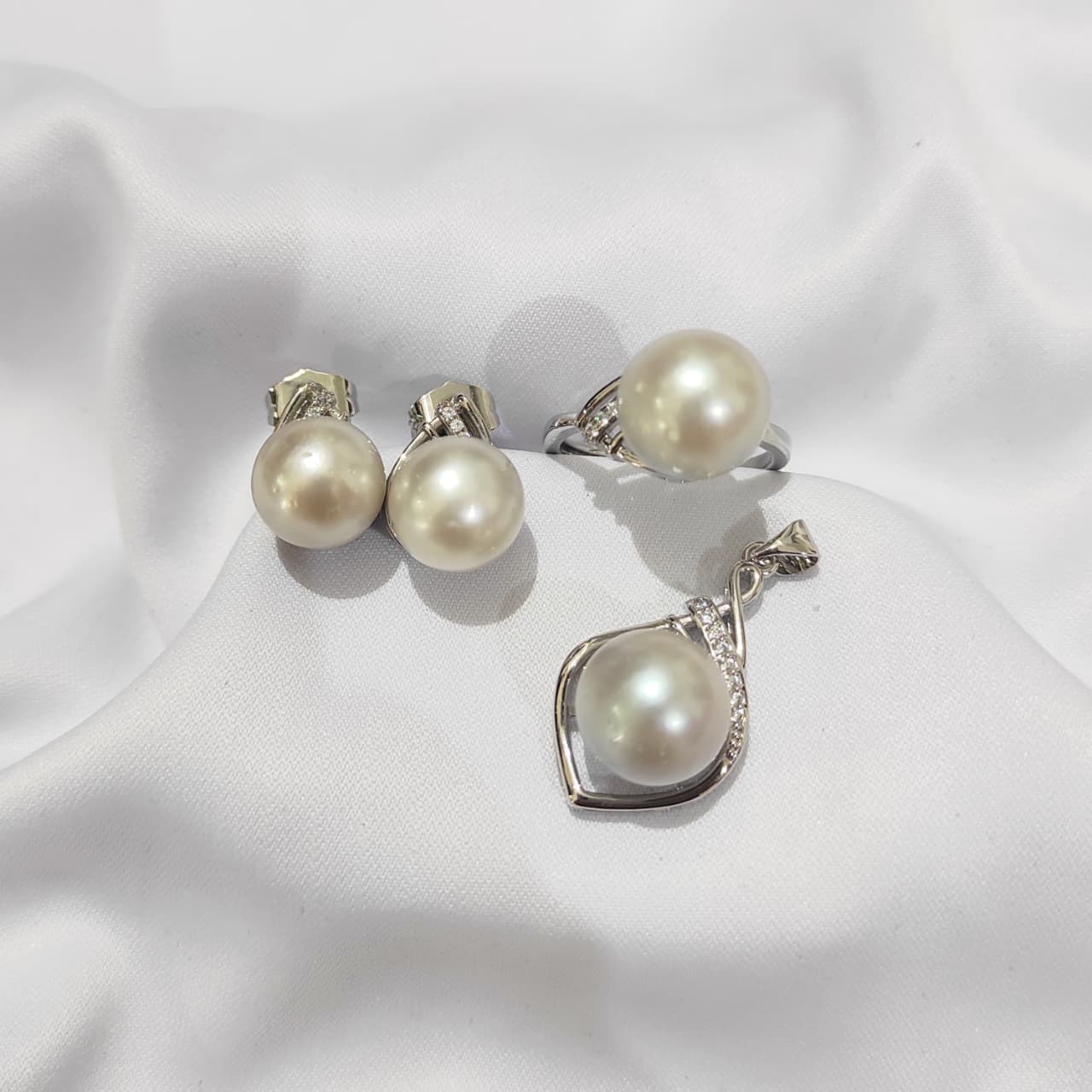 Set Perhiasan Mutiara Lombok – Anting, Cincin, Kalung